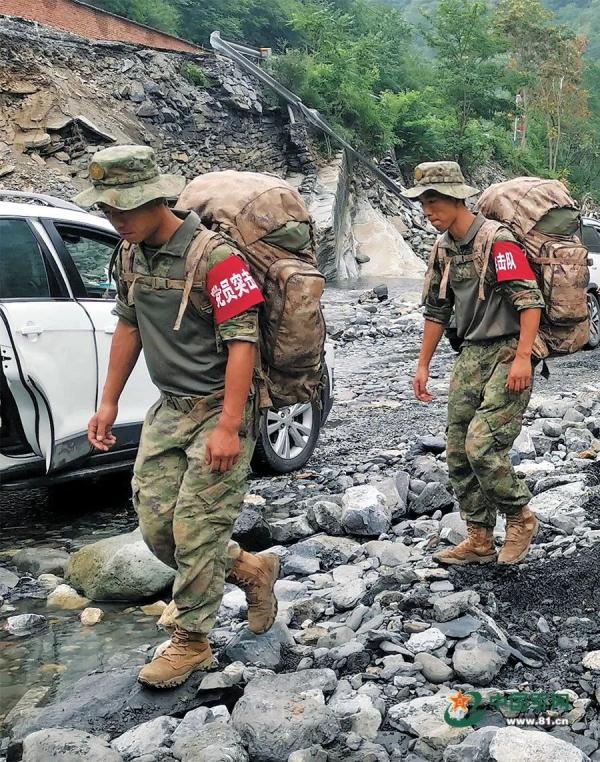 在洪涝灾区,数百名将校军官靠前指挥,广大党员冲锋在抗洪第一线,全力保障人民群众生命财产安全。保定市涞水县汤家庄村受灾后,50名民兵每人负重超25公斤,连夜跋涉在泥泞山路上,将物资全部送达。