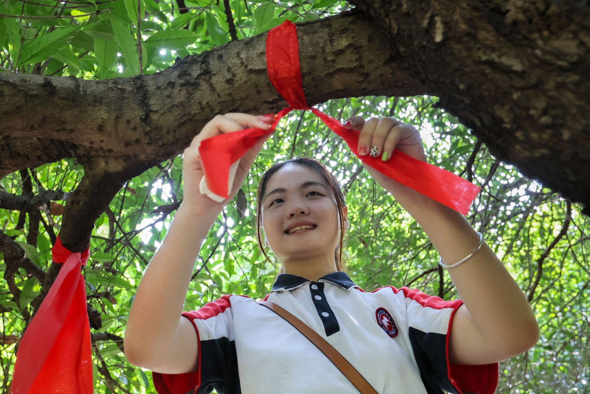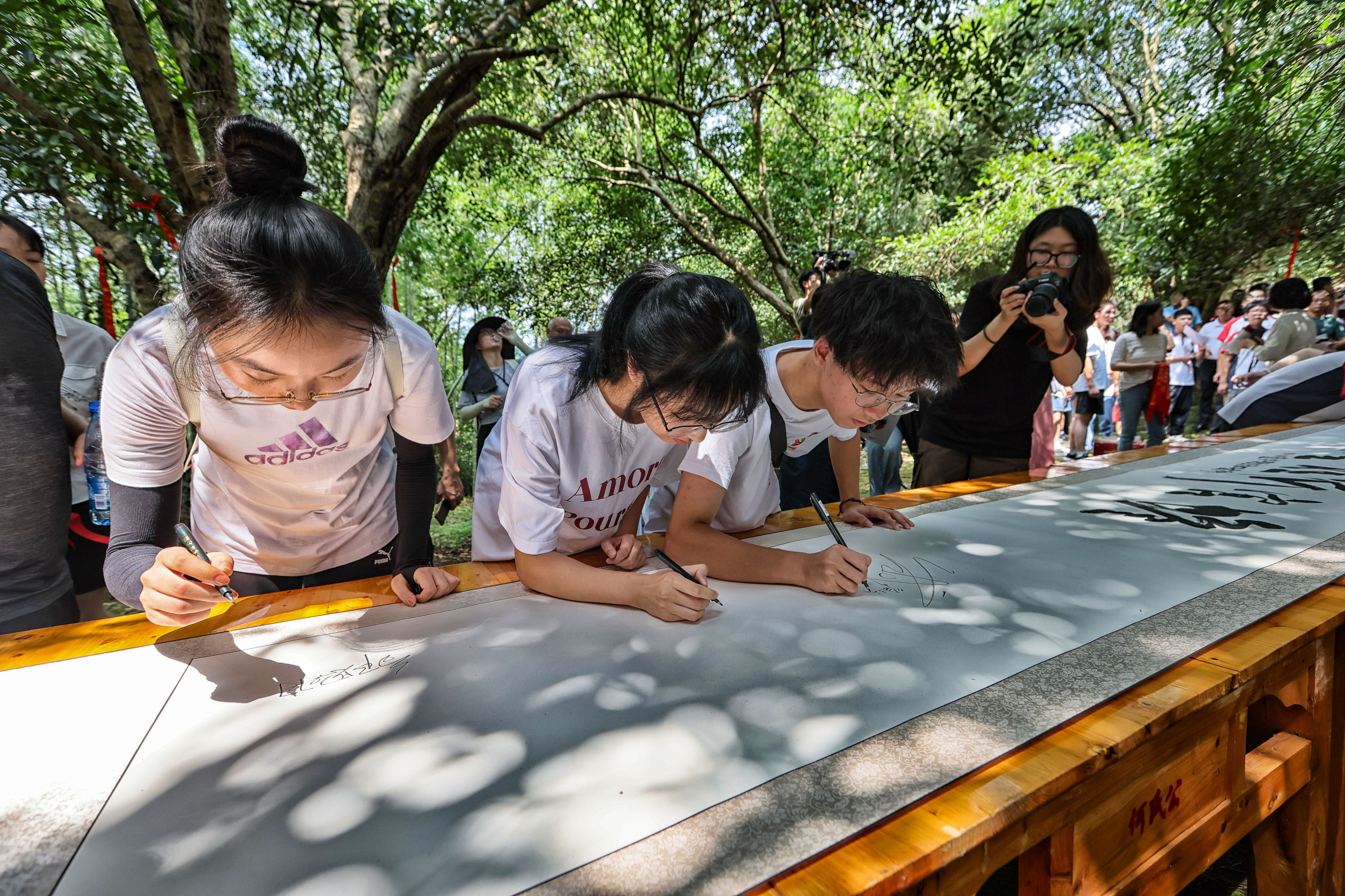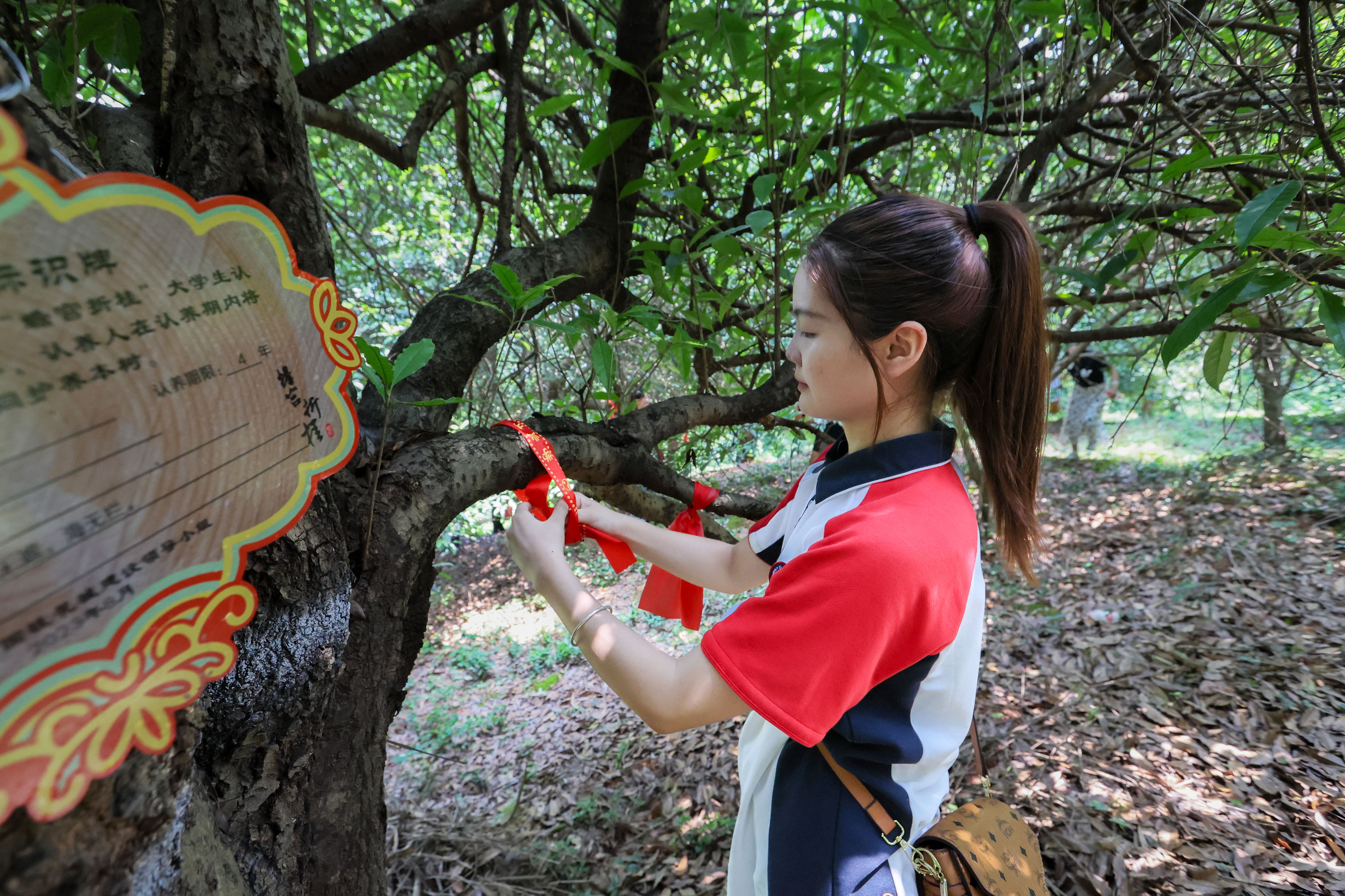 当天的活动中,来自咸宁各县(市、区)的96名准大学生在九桂廊进行认养古桂树现场签名,并按照专属编号进行寻桂确认。他们沿着桂花源景区内的林中走廊前行,在桂花树上系上祈愿红丝带,拍照留念,以此表达对古桂花树的敬意和祝福。