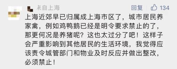 大团镇经济发展服务中心(农业农村服务中心) 陈锋:2018年浦东新区农委出台相关文件,规定只有农村可以每户养15只鸡,现在该户居民养了大规模的猪肯定是不被允许的,他也没有相关资质,我们与执法大队也联系过了,这两天肯定要过来处理。