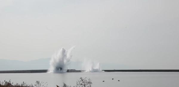 2010年,爱媛县松山港对海底炸弹进行爆破处理(社交媒体截图)