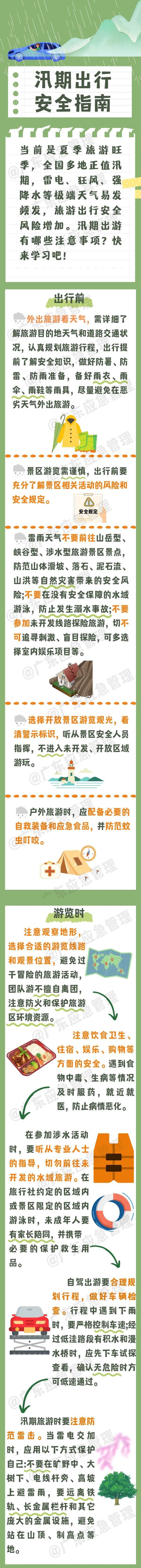 请选择正规景区游玩,不要在滩涂、河道、山脚、泄洪道等区域游览、野营和露宿。请您增强涉水活动安全意识,遵守安全规定,不在危险位置拍照;警惕落水、跌落等风险。