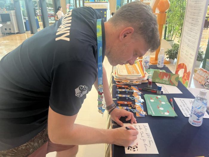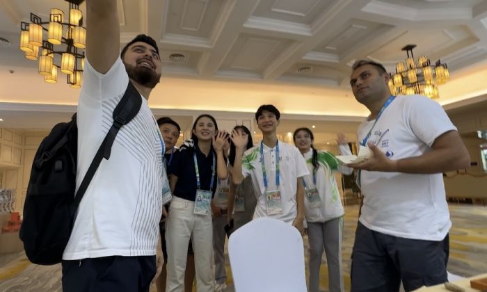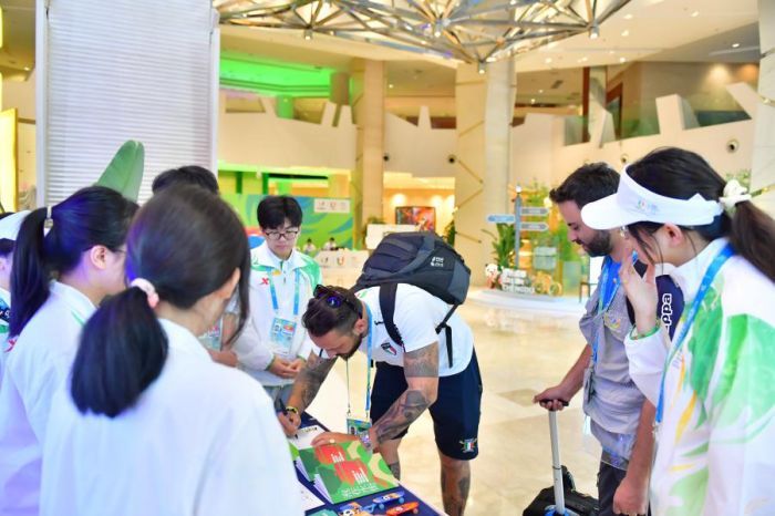 阿塞拜疆记者还邀请了现场其他媒体嘉宾与志愿者,一起拍摄了祝福短视频,为大运会上奋力拼搏的运动健儿加油喝彩。