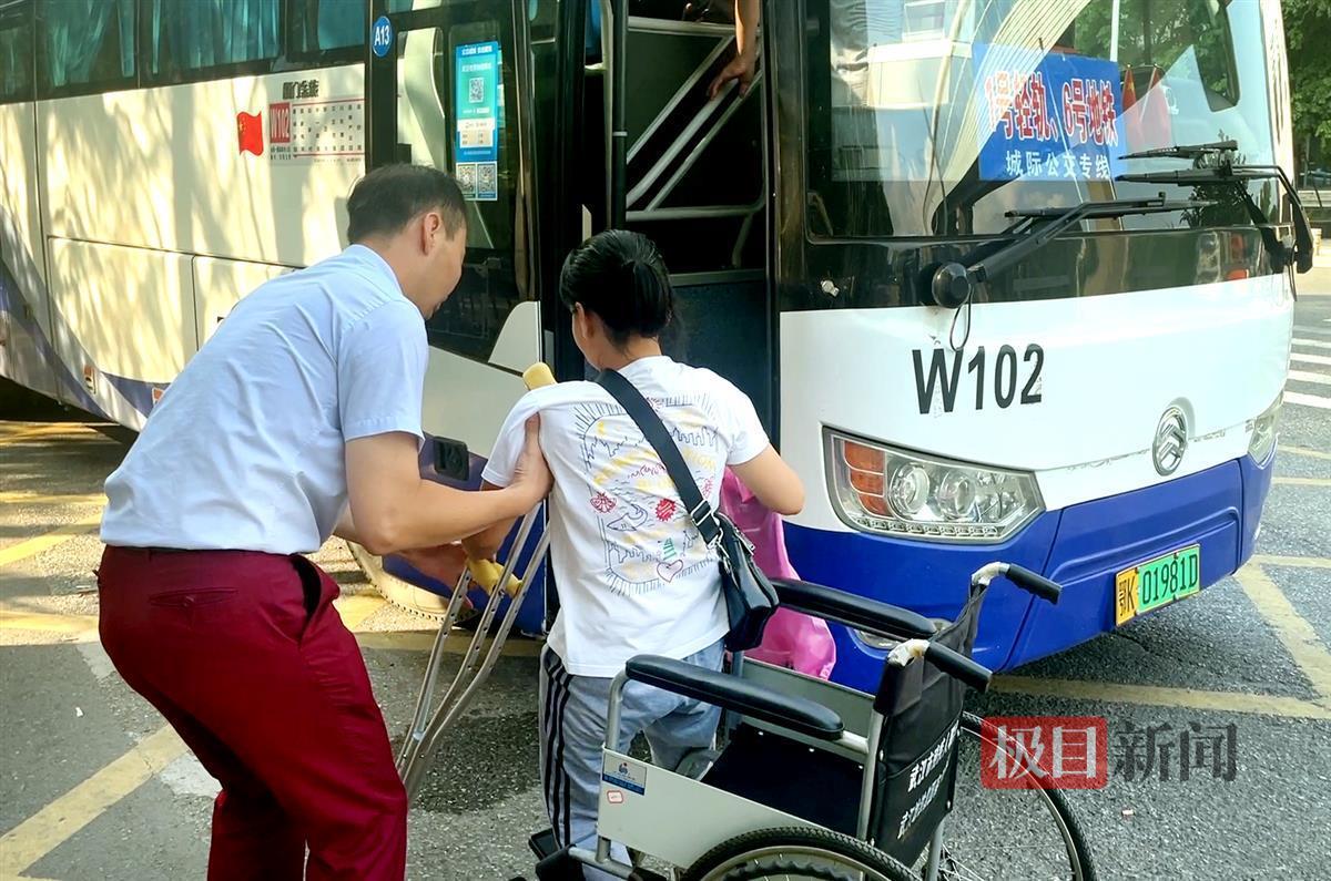 程前推着乘客送出站后,一直送达W102路城际公交列车上。程前扶乘客上车坐好后,叮嘱路途中注意安全,建议下次再来武汉可以提前拨打地铁服务热线或手机线上预约乘车服务,还叮嘱汽车司机在路途中和到站下车时给予帮扶与照顾。“这是8月份以来,我当班完成的第三次帮扶来汉看病的乘客。”程前介绍。