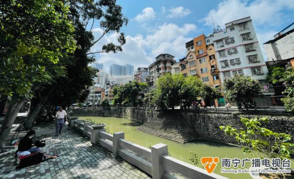 漫步于沿溪路上,只见路旁花红柳绿,路面干净整洁,沿街铺面风格统一。阳光透过树叶的缝隙洒下斑驳的光影,沿路的特色彩绘在讲述着“老南宁”的故事。