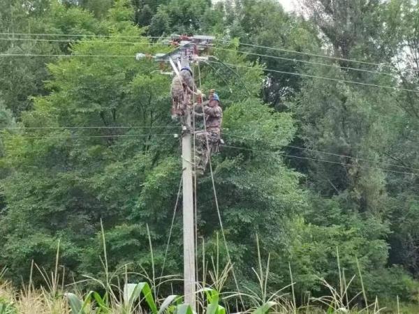 8月8日,记者在沙河子镇10千伏齐船口分支线路恢复供电现场看到,国网五常市供电分公司向阳供电所工作人员,正在电线杆上安装高压隔离开关及接引跨河10千伏电缆。恢复供电后,抢修人员又来到山河屯林业局奋斗林场抢修10千伏主干线,当天下午,该区域恢复供电。