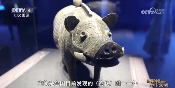 在湖南就出土了很多青铜器,我们院收藏的青铜器,有两大特色,一个是数量比较多,器型非常多,同时在造型上也很有地域特色,它有很多动物造型的。比如说我们今天在“神游”展厅看的这件猪尊,它就是全国目前发现的(商代)唯一一件以猪为造型的青铜尊,同时它是一件酒器。