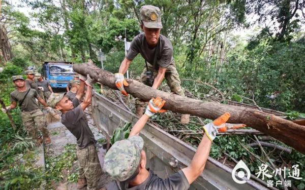 2000多名官兵在泉州各个受灾的乡镇、街道、公园等点位,参与灾后救灾重建。