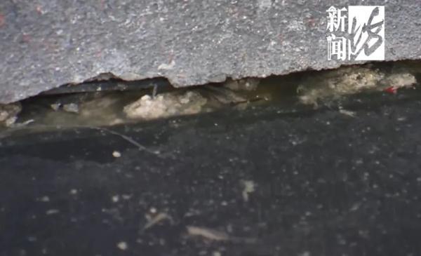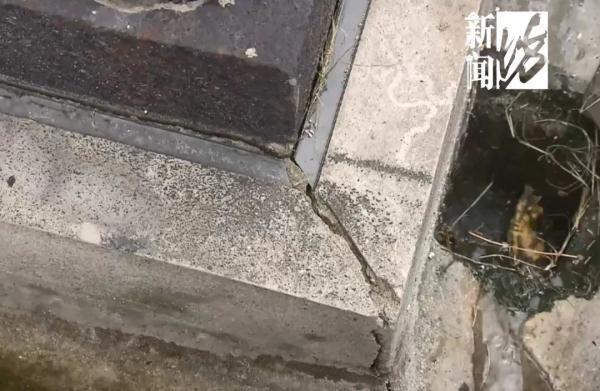 记者在现场看到,房屋根部位置确实有沉降开裂的情况,导致内部雨污管道破裂,污水外流。