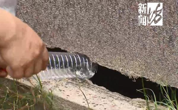 记者来到小区6号楼,只见一楼底部与地沟接壤的位置,已经裂开了一个很宽的缝隙,可以明显看到里面的泥土沉降下去。而这个缝隙,可以轻松塞入一个矿泉水瓶。而在另一边,同样是房屋根部的位置也已经开裂,假以时日,显然裂缝会越来越大。