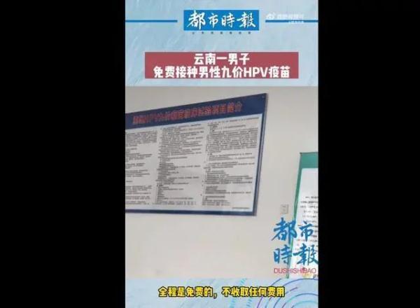 今年3月有媒体报道,云南普洱一男子发布视频称自己在普洱免费接种了HPV疫苗,医生回应称这是重组HPV九价疫苗临床试验疫苗,报名成功者可免费接种。云南省普洱市疾病预防控制中心张医生介绍:“目前男性接种的重组九价人乳头瘤病毒疫苗是III期临床试验疫苗,受试者不限户口不限户籍,需要接种3针,全程不收取任何费用,参与还会有一定的补助。此外,接种第7个月需要来体检一次,并补助800元,之后6年内每半年需体检一次,一次800元补助。”