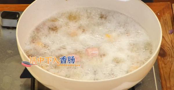 锅中加入水、月桂叶、孜然粉、红甜椒粉、盐,煮制2--3分钟,将土豆切成块儿,将香肠切成段儿。