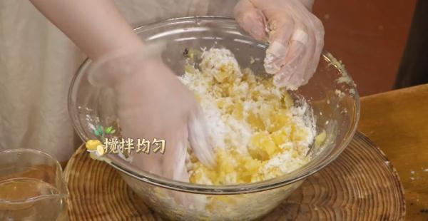 窍门:土豆泥加适量土豆淀粉,口感更筋道。