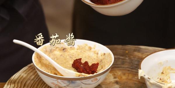 干焙辣椒放入石臼中捣碎,加入蒜、盐捣碎后盛出,加入蛋黄酱、番茄酱、柠檬汁、红酒醋、盐,搅拌均匀。