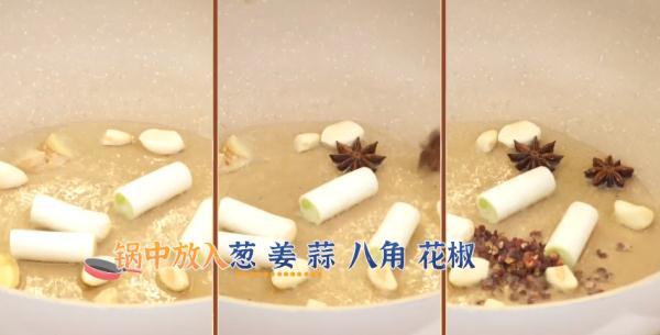 锅中加入油、葱、姜、蒜、八角、花椒、豆瓣儿酱,小火炒香后加入鸡肉、生抽、老抽、蚝油、料酒、二荆条辣椒,大火煮开。