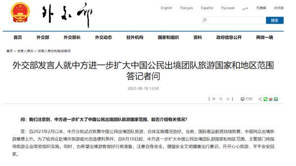 问:我们注意到,中方进一步扩大了中国公民出境团队旅游国家范围,能否介绍有关情况?