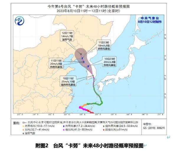 今年第6号台风“卡努”(KHANUN)(强热带风暴级)的中心10日11时距离韩国全罗南道东偏北方向约145公里(北纬35.5度、东经128.4度),中心附近最大风力有10级(25米/秒),中心最低气压为980百帕。