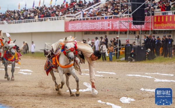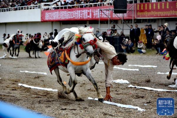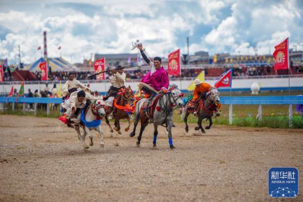 近日,西藏自治区那曲市恰青赛马节开幕,马术表演、文艺演出等活动吸引众多群众参与。