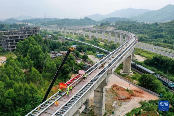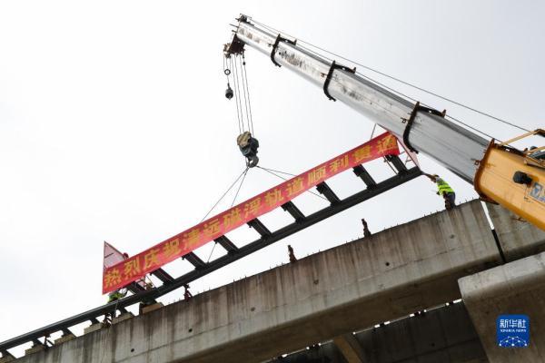 8月10日,广东清远磁浮旅游专线最后一榀轨排被吊装到横跨京广铁路的长隆特大桥上。