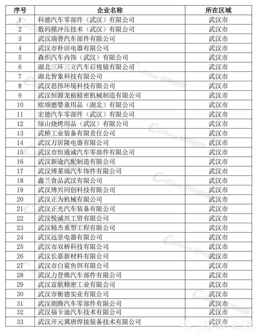 武汉市蔡甸区33家企业