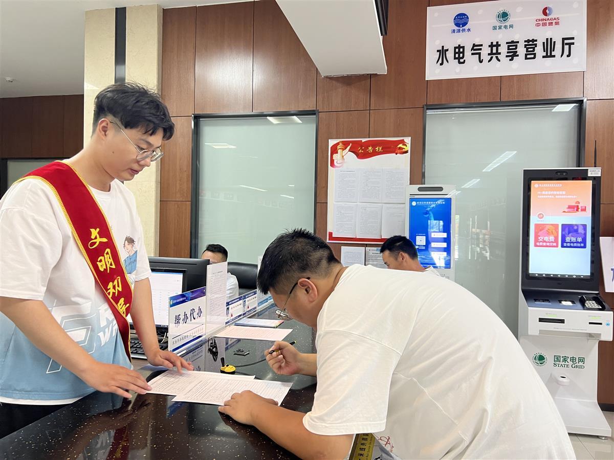 工作人员指导邓先生填写《不动产交易纳税登记与水电气一体化过户申请书》,一次性勾选了所需办理的用水、用电、用气事项,提交完房产证复印件和身份证复印件后,工作人员就告知邓先生回家等待办理结果即可,剩下的对接工作,将由工作人员通过后台系统推送,完成供水、供电、燃气过户。