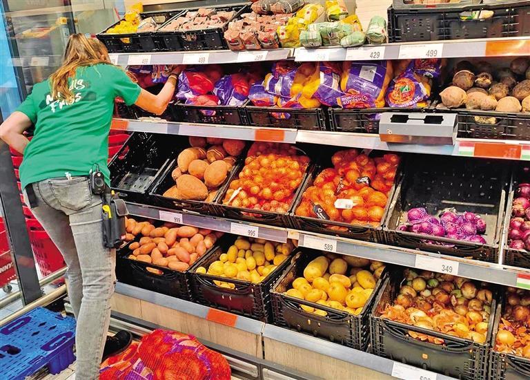 布达佩斯一家超市内用红色标签显示当日的打折商品。 本报记者 翟朝辉摄