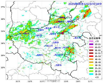 8月11日7时至12日7时,西部、北部部分县市出现阵雨、雷阵雨,雨量分布不均,部分地区中雨,局部大雨或暴雨,灵宝燕子山大暴雨,地市平均降水量三门峡23.1毫米、济源8.9毫米、安阳4.0毫米,有10个县(市、区)降水量超过25毫米,其中大于50毫米的有5个县(市、区),位列前三的分别为:灵宝市燕子山102.1毫米、洛宁县上戈94.3毫米、灵宝市南朝68.4毫米。最大小时降水量为灵宝市燕子山62.6毫米(8月11日18时至19时)。