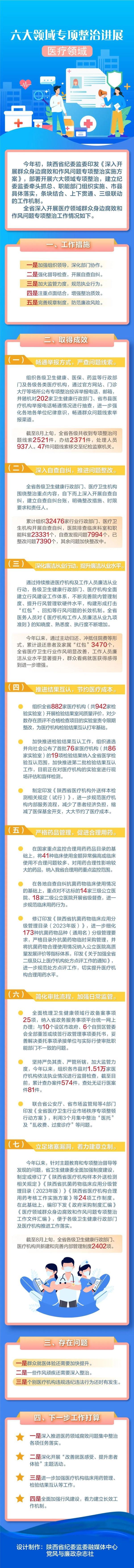 8月11日,陕西纪委监委公布六大领域专项整治进展中医疗领域情况。