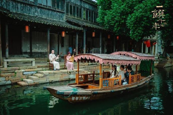 《一馔千年》有意识的将内容侧重点放在“探索”上,以追根溯源的认真态度去解码古籍中珍馐美馔的发展轨迹,也引领观众随着节目,共同开启一场沉浸式的深度游。比如在首期节目中,观众就可以循着镜头的转换,乘船在黎里市河品味十二道美食,感受黎里市河小桥流水人家的婉转惬意,倾听评弹的韵味悠远,河边浣纱的淳朴自然。