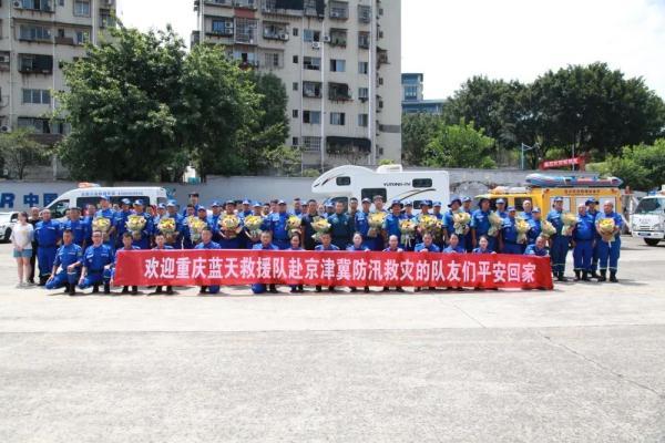 8月11日上午,随着救援队车队缓缓驶入位于万州区的训练基地,赴河北涞水开展救援任务的重庆蓝天救援队凯旋,受到后方基地队友、亲属及群众的热烈欢迎。