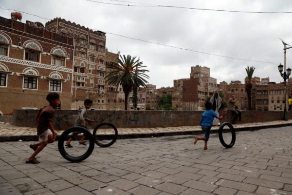 2019年9月28日,在也门首都萨那,儿童在街头玩耍。新华社发(穆罕默德摄)