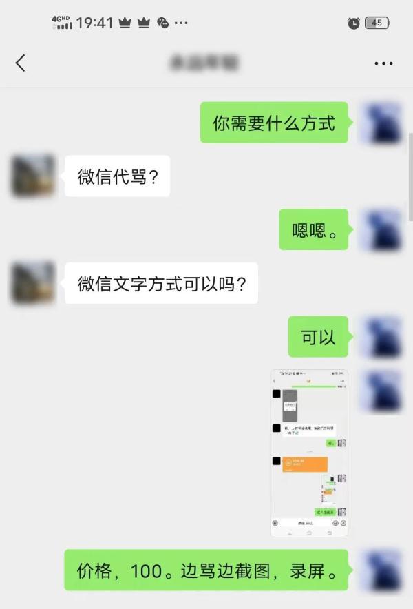 他先各大互联网平台发布“代骂”广告