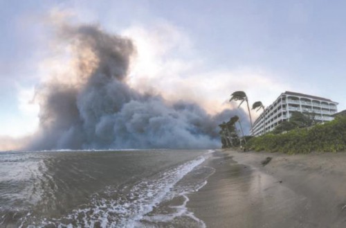 在毛伊岛拉海纳镇,野火带来浓烟滚滚 新华社 发
