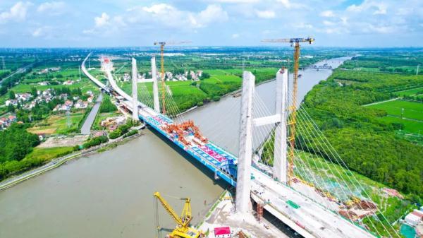 沪苏湖铁路跨斜塘航道斜拉桥顺利合龙
