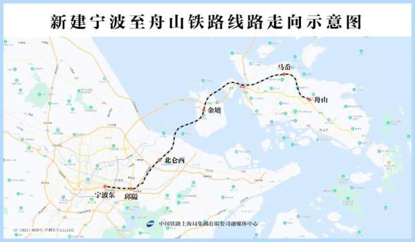 甬舟铁路西起宁波东站,经宁波市鄞州区、北仑区,舟山市金塘岛、册子岛及舟山本岛,东至定海区白泉镇,全长约77公里,设计时速250公里,是构建浙江省“1小时交通圈”、形成大陆与舟山岛间便捷的客运通道。