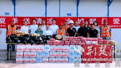 荆楚网(湖北日报网)讯(通讯员 代忠勇、吴浩、张兆宇)8月10日上午,荆门九派通·清凉驿站+户外职工爱心驿站再次“流动起来”,让爱在烈日下奔涌。荆门市文明办、荆门市总工会、共青团荆门市委、荆门九派通融媒体中心等单位负责人,与爱心企业(商家)一起带着450份爱心物资,将清凉直达一线劳动者。