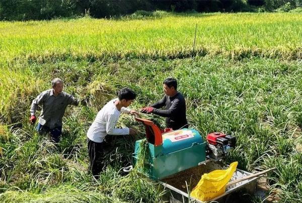 在田间收稻谷