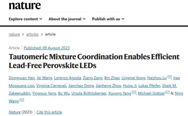 东南大学集成电路学院青年教师卢海洲与吉林大学王宁教授,洛桑联邦理工大学Michael Graetzel教授,上海大学杨绪勇教授等合作在《自然》(Nature)上发表了题为“TautomericMixture Coordination Enables Efficient Lead-Free PerovskiteLEDs”的研究论文,通过强化学配位调控使得无铅钙钛矿LED发光效率首次突破20%(Nature2023,doi.org/10.1038/s41586-023-06514-6)。卢海洲为文章共同通讯作者,东南大学集成电路学院为共同通讯单位。