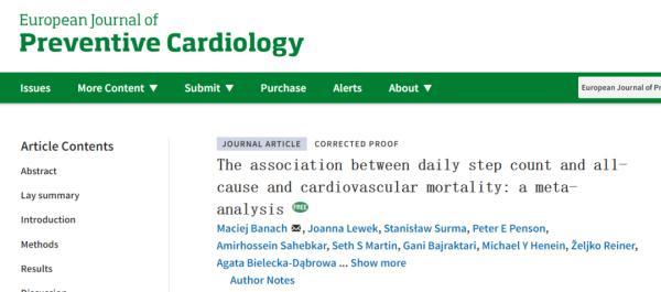 ①Maciej B, et al. The association between daily step count andall-cause and cardiovascular mortality: a meta-analysis, EuropeanJournal of Preventive Cardiology, 2023;, zwad229