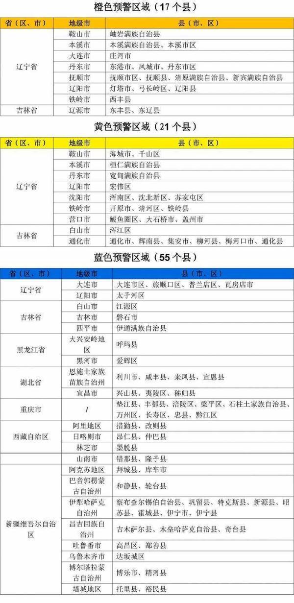 水利部和中国气象局8月12日18时联合发布橙色山洪灾害气象预警:预计,8月12日20时至8月13日20时,辽宁东部、吉林南部等地部分地区发生山洪灾害可能性较大(黄色预警),局地发生山洪灾害可能性大(橙色预警),预警区域涉及的县(市、区)见下表。其他地区也可能因局地短历时强降水引发山洪灾害,请各地注意做好实时监测、防汛预警和转移避险等防范工作。
