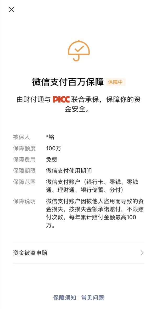 微信支付“百万保障”