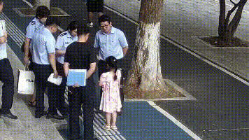 8月8日下午,下陆公安分局团城山派出所民警程珍正与治安大队的民警在湖北银行进行检查。忽然,一位身着花色连衣裙的小女孩抱着一把折叠椅跑到程珍面前,用稚嫩的声音求助道:“警察阿姨,我走丢了,你能送我回家吗?”