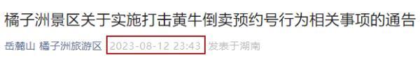 橘子洲景区关于实施打击黄牛