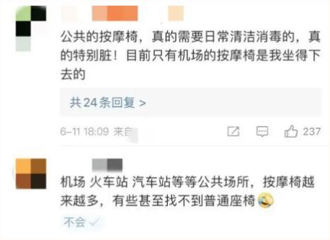 事实上,共享按摩椅当初进入商场、酒店等公众场所时,只是“锦上添花”的设施。但由于契合了移动支付理念,满足了大家对于便利和舒适的要求,车站、影院等场所也开始大规模引进,不但呈现出遍地开花的趋势,还大量替代了普通座椅,让很多消费者不得不用。碰到清洁维护不到位的情况,消费者即使如骨鲠在喉、坐不下去,也没有别的选择。