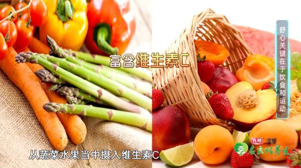 其次,要多吃蔬菜、水果,从中摄入维生素C;