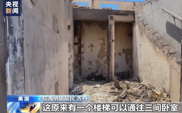 “这里原来是门厅,这原来有一个楼梯可以通往三间卧室,这里原来是餐厅,这里原来是客厅。很悲伤,真的很悲伤,拉海纳消失了,整个城镇可以说已经不复存在了。”拉海纳镇居民乔丹说。