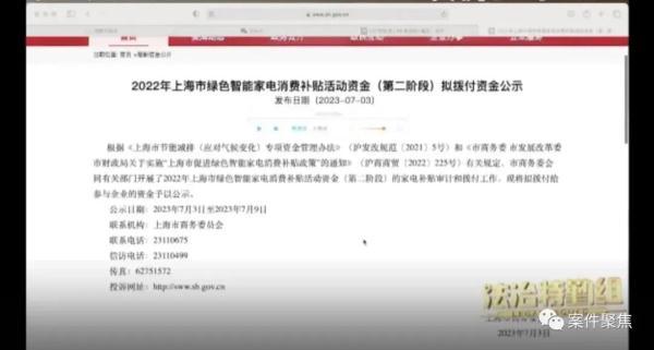 随后,记者又找到了主办此次绿色智能家电消费补贴活动的市商务委,工作人员回应称,此事如经查实,会有相关处罚,而处罚应当由司法部门来作出。