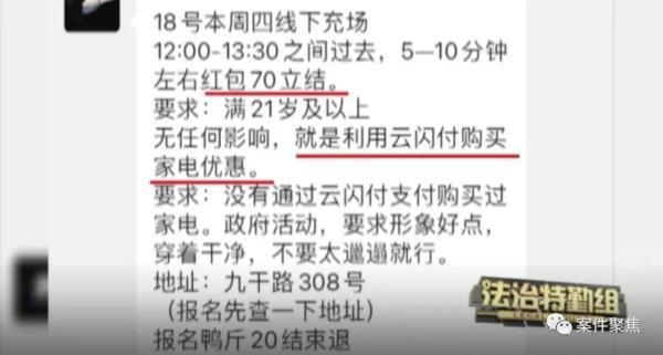记者发现,网络上有一条兼职广告,声称只要参加一项利用“云闪付”app购买绿色家电的政府优惠活动,就可以拿到70元的工资。