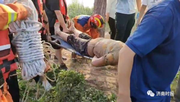 8月9日16时02分,济南市消防救援支队指挥中心接到报警,称济南市高新区北河套村,北黄河堤岸边有一人踩空落水,腰部受伤严重被困水边。临港消防救援站立即出动1车7人赶赴现场。