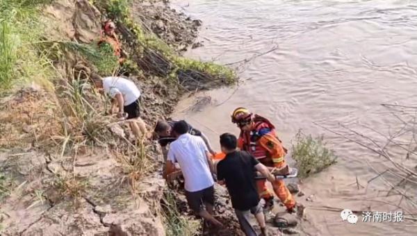 8月9日下午,在黄河济南北河套村段,一名女子在河边不慎踩空,受伤被困河滩。消防救援人员赶到现场,将女子救起。