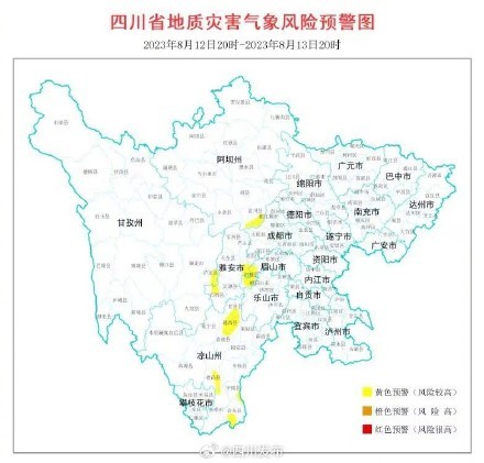 日前,从四川省自然资源厅获悉,根据四川省地质环境条件,结合四川省气象台天气预报情况,8月12日20时至8月13日20时,四川省地质灾害指挥部办公室发布全省地质灾害气象风险3级黄色预警。此次预警区域为:雅安雨城区、石棉县,眉山洪雅县,阿坝州汶川县,甘孜州泸定县,凉山州会理市、德昌县、会东县、宁南县、喜德县、越西县、甘洛县等5市(州)12个县(市、区)。(成都日报锦观新闻)